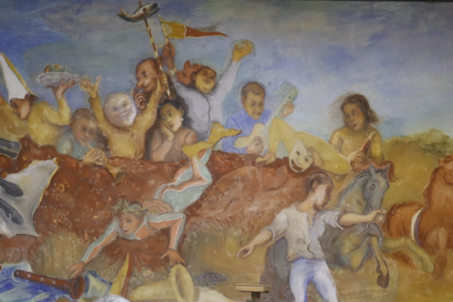 Nel cuore del Municipio I, all’interno della Sala Orfeo Tamburi del Palazzo dell’Anagrafe, affrescata dall’artista Orfeo Tamburi, Paolo Cazzella ha dato vita a un’esperienza artistica rara: la realizzazione delle opere dal vivo, in dialogo diretto con uno spazio istituzionale carico di memoria e significato. Per alcuni giorni, il Municipio si è trasformato in un luogo di creazione oltre che di amministrazione. Cazzella ha lavorato immerso nell’architettura e nell’affresco di Tamburi, lasciando che il gesto artistico si confrontasse con la storia, con il tempo e con la funzione pubblica del luogo. Il processo creativo – fatto di stratificazioni, segni, pause e ripensamenti – è diventato parte integrante dell’opera stessa, restituendo un’arte che nasce sotto gli occhi della città. Da questa esperienza prende forma la mostra allestita nella Sala Orfeo Tamburi, aperta eccezionalmente al pubblico per un intero mese nel periodo del Carnevale, tempo simbolico di attraversamento, trasformazione e libertà. Le opere esposte conservano la traccia viva della loro genesi, rendendo la sala non un semplice contenitore, ma parte attiva del racconto artistico. “L’apertura straordinaria della Sala Orfeo Tamburi rappresenta un gesto culturale e civico di grande valore – dichiara Giulia Silvia Ghia, assessora alle Politiche Culturali, politiche educative, sport e politiche giovanili del Municipio I –. Restituire alla cittadinanza uno spazio istituzionale così significativo significa affermare che l’arte contemporanea può abitare i luoghi del quotidiano, dialogare con essi e trasformarli in spazi di visione, incontro e partecipazione“.