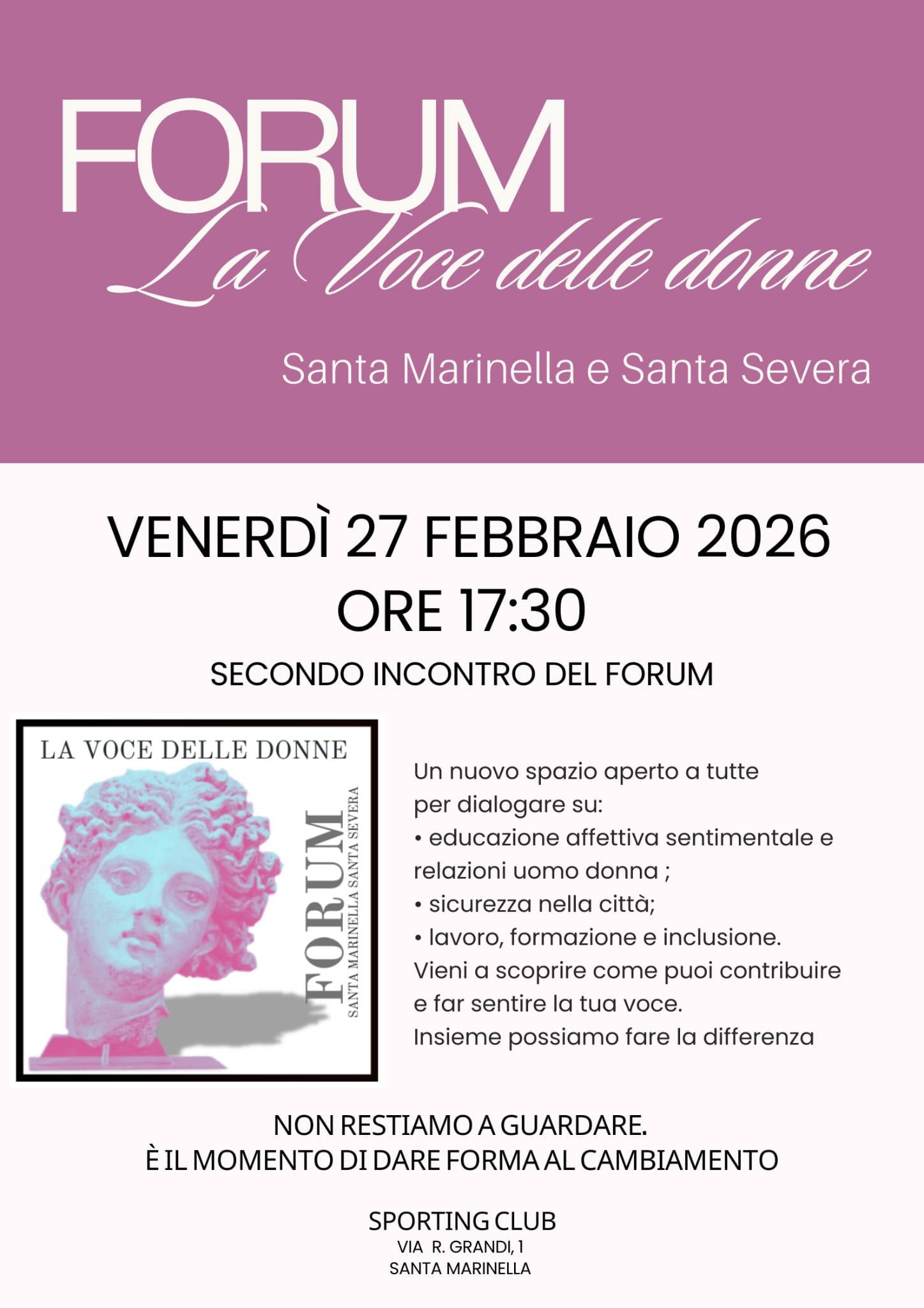 Dal confronto alle proposte operative. È questo il passaggio chiave che caratterizzerà il secondo incontro del Forum delle Donne di Santa Marinella e Santa Severa, in programma giovedì 27 febbraio alle ore 17.30 presso lo Sporting Club Santa Marinella. L’appuntamento rappresenta un momento di svolta nel percorso avviato dal Forum: dopo una prima riunione molto partecipata, segnata da un confronto intenso e da numerosi contributi, le promotrici intendono ora dare una struttura più concreta al lavoro emerso. Idee, riflessioni ed esperienze condivise nel primo incontro hanno infatti messo in luce bisogni, criticità e potenzialità del territorio, aprendo la strada a una fase più operativa. «Sono nate tante proposte, tante emozioni e una forte voglia di partecipare – spiegano le organizzatrici –. Ora è il momento di lavorare in modo strutturato». L’obiettivo del Forum è trasformare l’ascolto in progettualità, individuando priorità, strumenti e azioni capaci di incidere realmente sulla vita sociale e civile delle due comunità. Il secondo incontro sarà quindi dedicato alla definizione dei prossimi passi: dalla costruzione di gruppi di lavoro tematici alla messa a fuoco di iniziative concrete, con l’intento di dare continuità a un percorso che punta a rafforzare il protagonismo femminile e la partecipazione attiva delle cittadine. Un momento aperto al dialogo e alla collaborazione, che conferma la volontà del Forum delle Donne di non restare un semplice spazio di discussione, ma di diventare un laboratorio permanente di idee e azioni per il territorio.