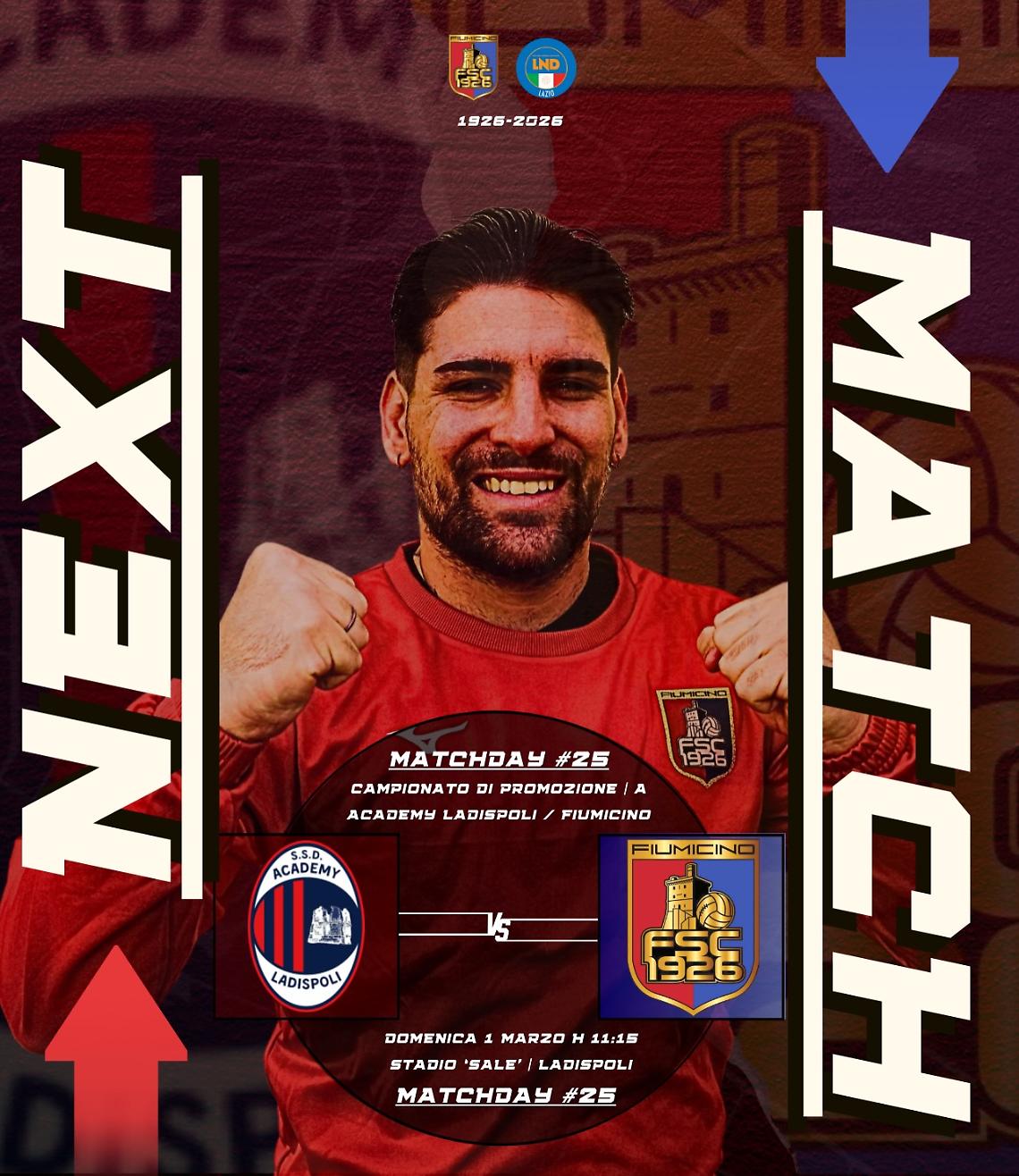 Trasferta impegnativa per il Fiumicino nella 25esima giornata del girone A di Promozione. Domenica, alle ore 11.15, i rossoblu saranno ospiti dell’Academy Ladispoli, con l’obiettivo di consolidare lo stato di forma e centrare il terzo risultato utile consecutivo. Dopo i pareggi combattuti contro Fonte Meravigliosa e Tolfa, il Fiumicino torna a giocare lontano dal proprio campo, cercando quella continuità necessaria per muoversi nella parte centrale della classifica. Attualmente undicesimi, i ragazzi guidati da mister Albano hanno conquistato un punto nelle ultime due gare, ma serve un passo avanti per raggiungere la stabilità che rappresenta il traguardo immediato della stagione. Di fronte ci sarà un Academy Ladispoli in salute, sesto in classifica e reduce dal prezioso 1-1 sul campo della capolista Borgo Palidoro, risultato che ha confermato le ambizioni della squadra tirrenica. I padroni di casa punteranno sul fattore campo per consolidare la loro posizione e restare agganciati alla zona alta della graduatoria. La sfida promette equilibrio: il Fiumicino proverà a sfruttare la propria motivazione per allungare la striscia positiva, mentre l’Academy Ladispoli cercherà di trasformare la solidità mostrata nelle ultime gare in punti pesanti davanti al proprio pubblico. Un confronto dai molteplici stimoli, che potrebbe avere riflessi importanti sia in chiave classifica sia per il morale delle due squadre.