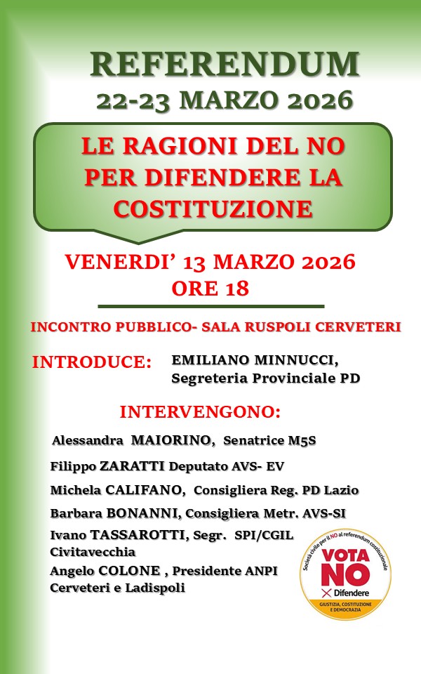 Cerveteri si prepara a un confronto pubblico sul referendum costituzionale sulla giustizia, promosso dal Comitato per il No Cerveteri-Ladispoli, con l’obiettivo di spiegare le ragioni della contrarietà alla riforma. L’appuntamento, aperto a cittadini e operatori del settore, sarà un’occasione per approfondire i contenuti del testo costituzionale e i possibili impatti sul sistema giudiziario italiano.Secondo i promotori, la riforma interviene su sette articoli della Costituzione senza affrontare in modo concreto le criticità quotidiane che incidono sull’efficienza della giustizia. In particolare, la separazione delle carriere, presentata come uno dei principali punti di innovazione, rischierebbe di avere un impatto limitato e non garantirebbe benefici tangibili né ai cittadini né agli operatori del settore. Allo stesso tempo, la previsione di nuovi organismi di controllo potrebbe moltiplicare strutture e incarichi, senza risolvere i problemi strutturali della magistratura. «Questa riforma potrebbe modificare gli equilibri tra i poteri dello Stato, con il rischio di un maggiore condizionamento della magistratura», sottolineano gli organizzatori, invitando la cittadinanza a partecipare per informarsi e scegliere con consapevolezza. L’incontro sarà introdotto da Emiliano Minnucci, dirigente del Partito Democratico della Provincia di Roma, e vedrà la partecipazione di diversi esponenti politici e rappresentanti della società civile: Sen. Alessandra Maiorino (M5S), Dep. Filiberto Zaratti (AVS – EV), Cons. Reg. Michela Califano (PD), Cons. Metr. Barbara Bonanni (AVS – SI), Angelo Colone, Presidente ANPI sez. Cerveteri e Ladispoli, Ivano Tassarotti, segretario CGIL/SPI Lega Civitavecchia. Il Comitato per il No invita tutti i cittadini interessati a partecipare, sottolineando come il momento sia decisivo per comprendere le conseguenze della riforma e per esprimere un voto consapevole nel referendum.L’incontro rappresenta dunque un’occasione di dibattito aperto, dove le diverse voci potranno confrontarsi sulle sfide della giustizia italiana e sulle implicazioni costituzionali della proposta referendaria.