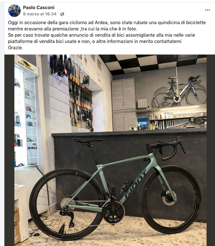 «Mentre eravamo concentrati sulle premiazioni, con la verifica dei tempi – racconta Paolo Casconi, vigile del fuoco e appassionato di ciclismo – una persona ha urlato che stavano rubando le nostre biciclette. In un primo tempo si è pensato a uno scherzo, poi siamo corsi a vedere e la mia, che era legata all’esterno, era già sparita, le fascette tagliate. Abbiamo stimato circa 15 biciclette rubate, a qualcuno hanno preso anche il ciclocomputerino, qualche borsa, con danni anche alle auto». Il furto, dal valore complessivo stimato in oltre 50mila euro, sarebbe stato messo a segno da un gruppo organizzato, probabilmente a conoscenza del valore dei mezzi, che vanno dai 5mila ai 13mila euro ciascuno, e dotato di un furgone per il trasporto rapido delle biciclette. L’episodio è avvenuto a pochi passi dal centro abitato, a meno di 300 metri dal punto di raduno della gara, davanti a spettatori e appassionati. L’evento ha scosso la comunità ciclistica locale e gli organizzatori, che hanno sporto immediata denuncia alle autorità. Le indagini sono già in corso con l’obiettivo di individuare i responsabili e recuperare le biciclette rubate. L’episodio evidenzia la necessità di maggiori misure di sicurezza per eventi sportivi all’aperto, affinché passione e competizione non siano rovinati da gesti criminali.