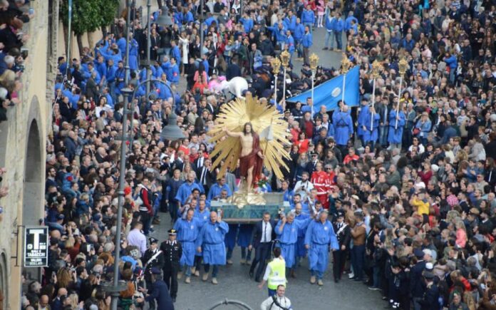 Civitavecchia e il territorio circostante si preparano a vivere uno degli eventi più suggestivi della Pasqua: la Processione del Cristo Risorto di Tarquinia, conosciuta affettuosamente come “del Cristo che corre”, torna oggi a colorare di fede e storia le vie del centro storico, trasformando il silenzio medievale in un boato carico di emozione. Il momento clou della processione è unico e irripetibile: il fragore dei fucili a salve squarcia l’aria mentre il passo dei sedici portatori scandisce il ritmo, sostenendo sulle spalle quasi mezza tonnellata di peso, simbolo della devozione e della memoria storica della comunità. Ogni respiro sincopato, ogni movimento misurato, diventa parte di un rito che unisce forza fisica e spiritualità. Ad accompagnare i portatori, la banda “Giacomo Setaccioli” intona la celebre “Marcia della Risurrezione”, il cui ritmo incalzante guida la folla e rende palpabile l’intensità della tradizione. È un’esperienza che coinvolge tutti i sensi: la vista delle strade addobbate, l’udito dei colpi e della musica, e la partecipazione emozionata dei fedeli che seguono il corteo con rispetto e meraviglia. Non è solo un rito religioso: la processione rappresenta un autentico patrimonio culturale della Maremma laziale, capace di attrarre visitatori da tutta la provincia e di rafforzare l’identità della comunità. Ogni anno, questo momento rinnova la connessione tra passato e presente, tra devozione popolare e celebrazione collettiva, rendendo Tarquinia – e chi la osserva da vicino, anche da Civitavecchia – protagonista di un evento che resta nel cuore. La “Processione del Cristo Risorto” è così molto più di una tradizione pasquale: è emozione, storia e partecipazione, un rituale che racconta la forza della fede attraverso gesti, suoni e colori che attraversano il tempo.