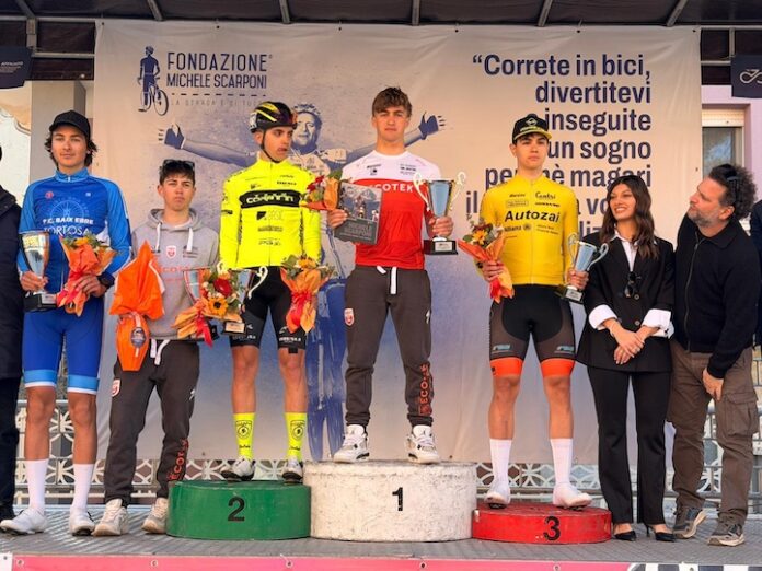 Ancora un risultato di prestigio per il giovane talento di Cerveteri, Lorenzo Ferraro, che conquista il secondo podio stagionale sfiorando la vittoria al Trofeo Michele Scarponi, andato in scena venerdì 3 aprile sulle strade delle Marche. La gara nazionale juniores, tra le più sentite del calendario, si è sviluppata lungo un percorso impegnativo di 119,2 chilometri tra Filottrano e Castelraimondo, coperti in 2h49’02” a una media sostenuta di oltre 42 chilometri orari. Alla partenza si sono presentati ben 163 corridori, a testimonianza dell’alto livello della competizione, aperta da un momento di forte emozione con l’omaggio al cimitero di Filottrano davanti alla tomba di Michele Scarponi, a cui la corsa è dedicata. Nel finale, combattuto e ad alta velocità, il gruppo si è ridotto a una cinquantina di unità, pronte a giocarsi il successo in volata. Ferraro, in forza al Team Coratti, ha lanciato il suo sprint con grande tempismo, imboccando per primo il lungo rettilineo d’arrivo e dando l’impressione di poter portare a casa la vittoria. Negli ultimi metri, però, è arrivato il ritorno decisivo di Cingolani, capace di superarlo proprio sulla linea del traguardo, relegando il giovane laziale a un comunque prestigioso secondo posto. A completare il podio è stato Lorenzo Ceccarello, protagonista insieme ai migliori interpreti della categoria a livello nazionale. Per Ferraro si tratta di una conferma importante, che certifica il suo ottimo stato di forma e la crescita costante in questa stagione. Un risultato che lascia intravedere margini di miglioramento e nuove occasioni per puntare al gradino più alto del podio nelle prossime competizioni.
